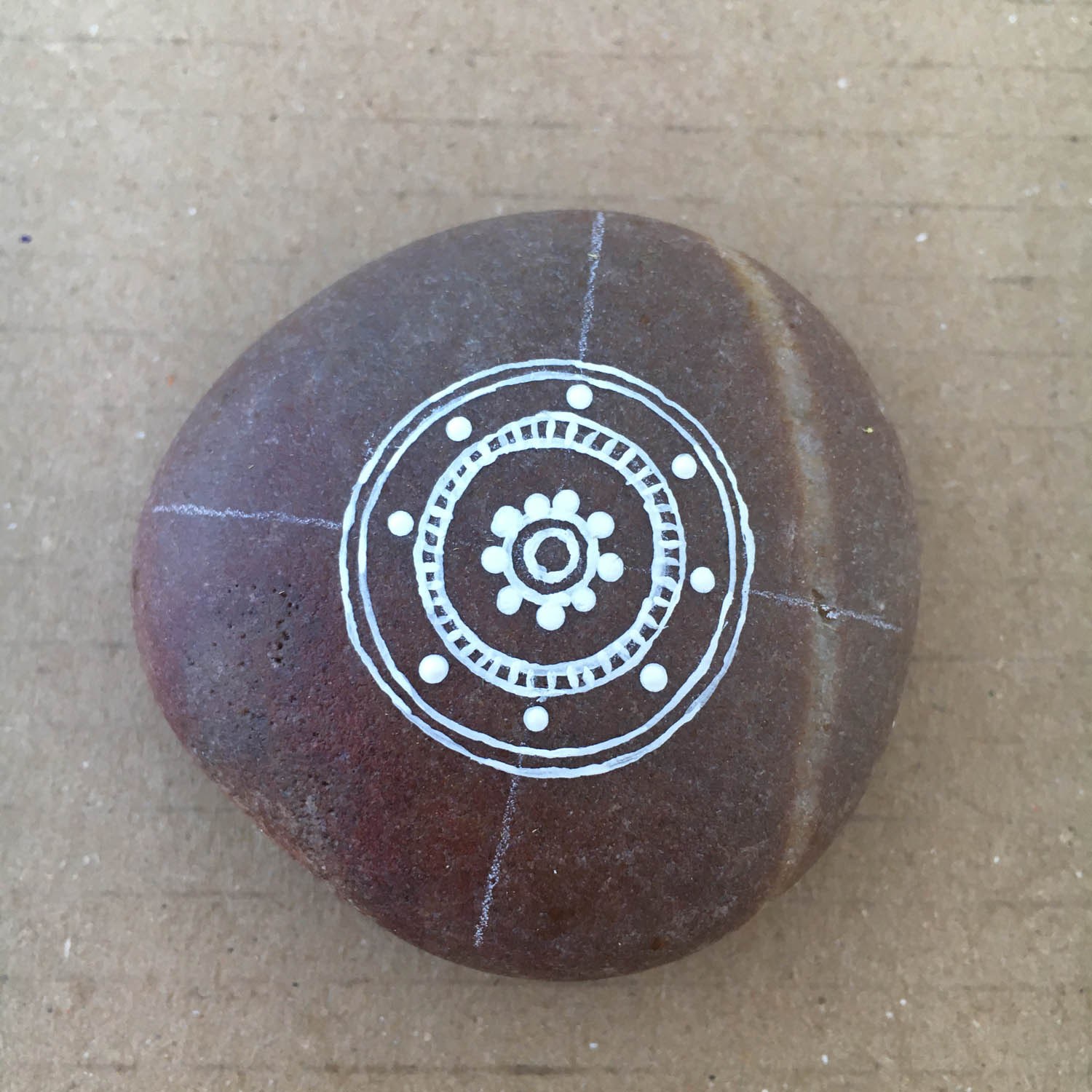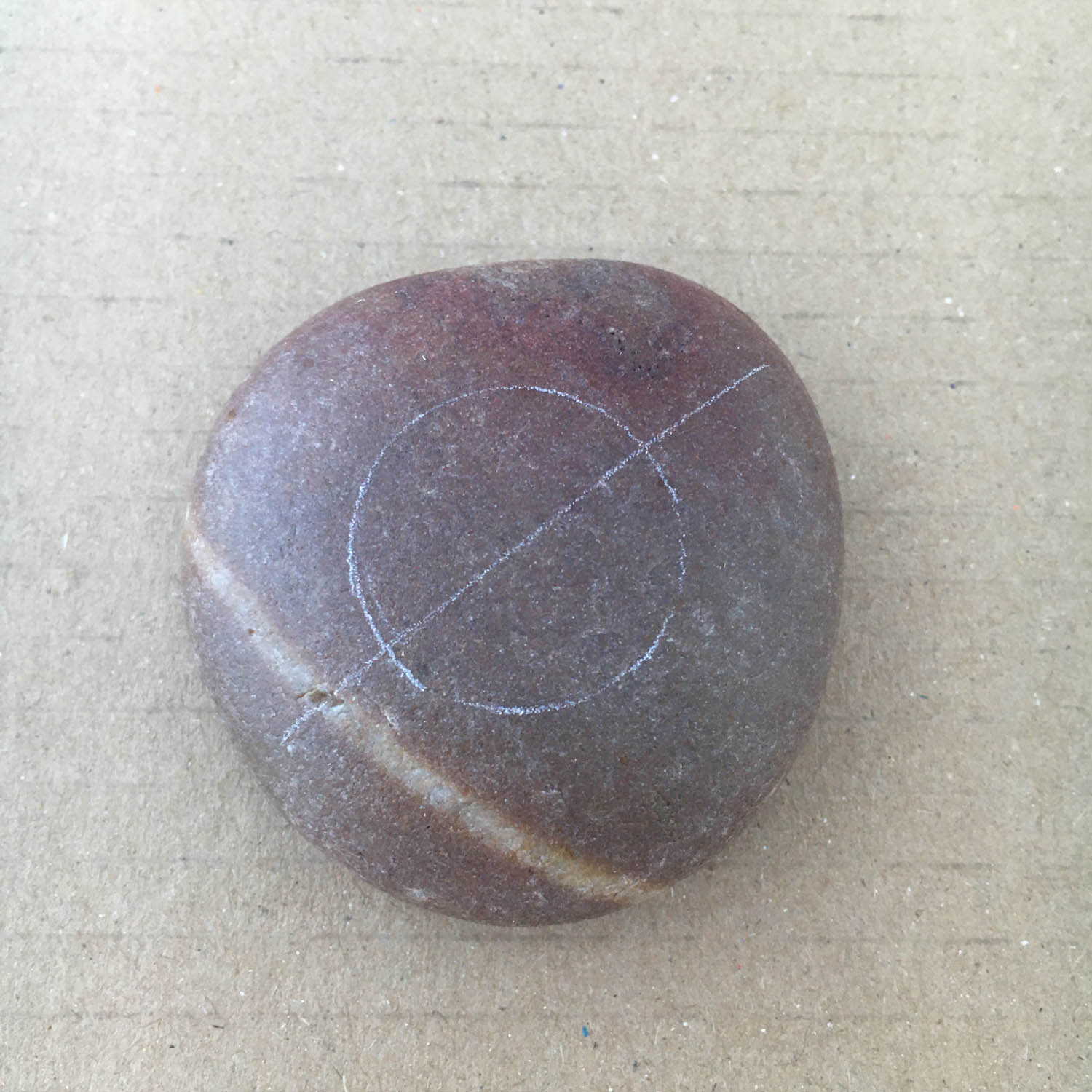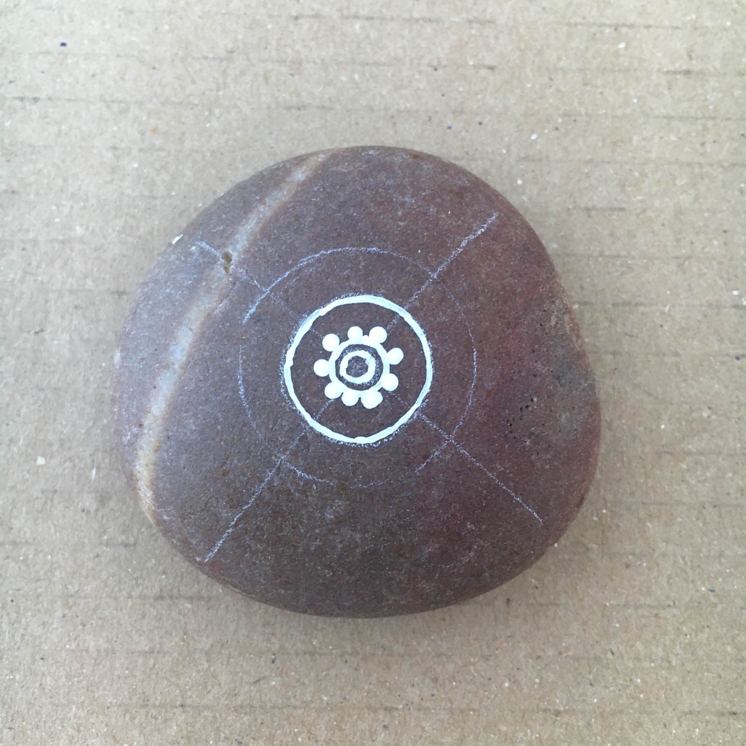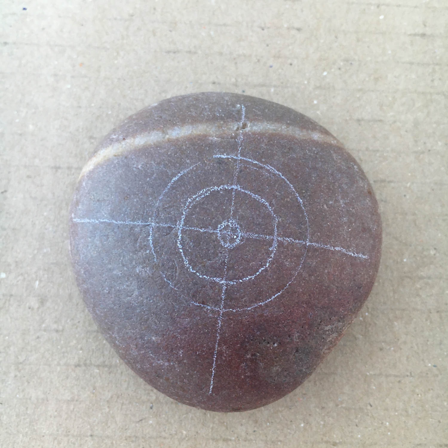 This white circle can serve as a guide to find the centre of the pebble by drawing a cross through the centre of the circle. Again, it doesn't have to be 100%. If you are way out with your lines, you can use an erasor on the white pencil lines.