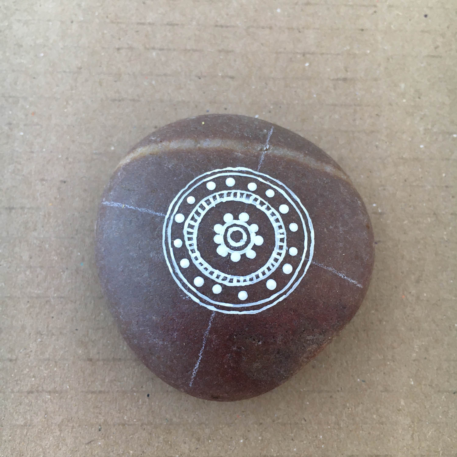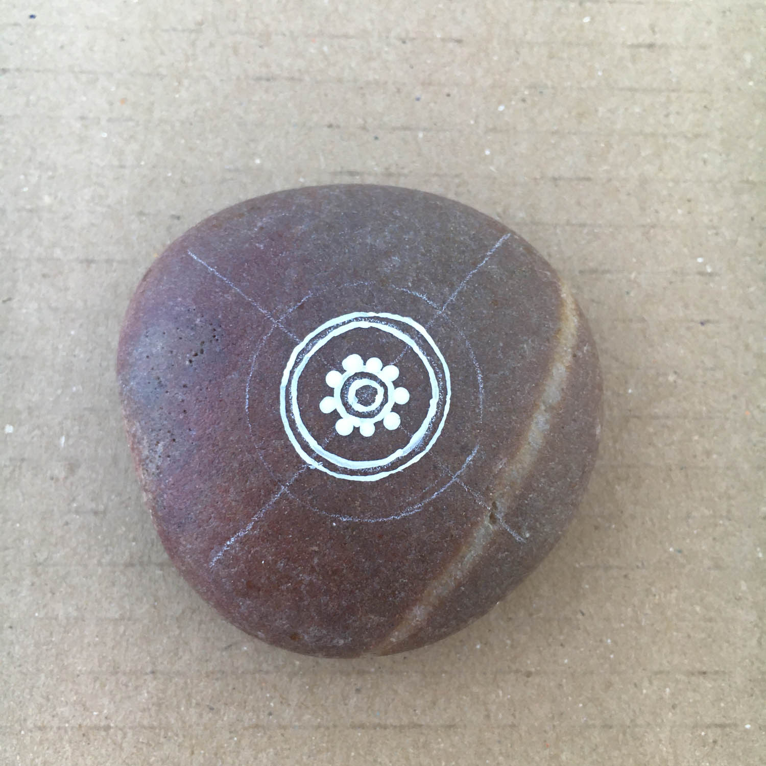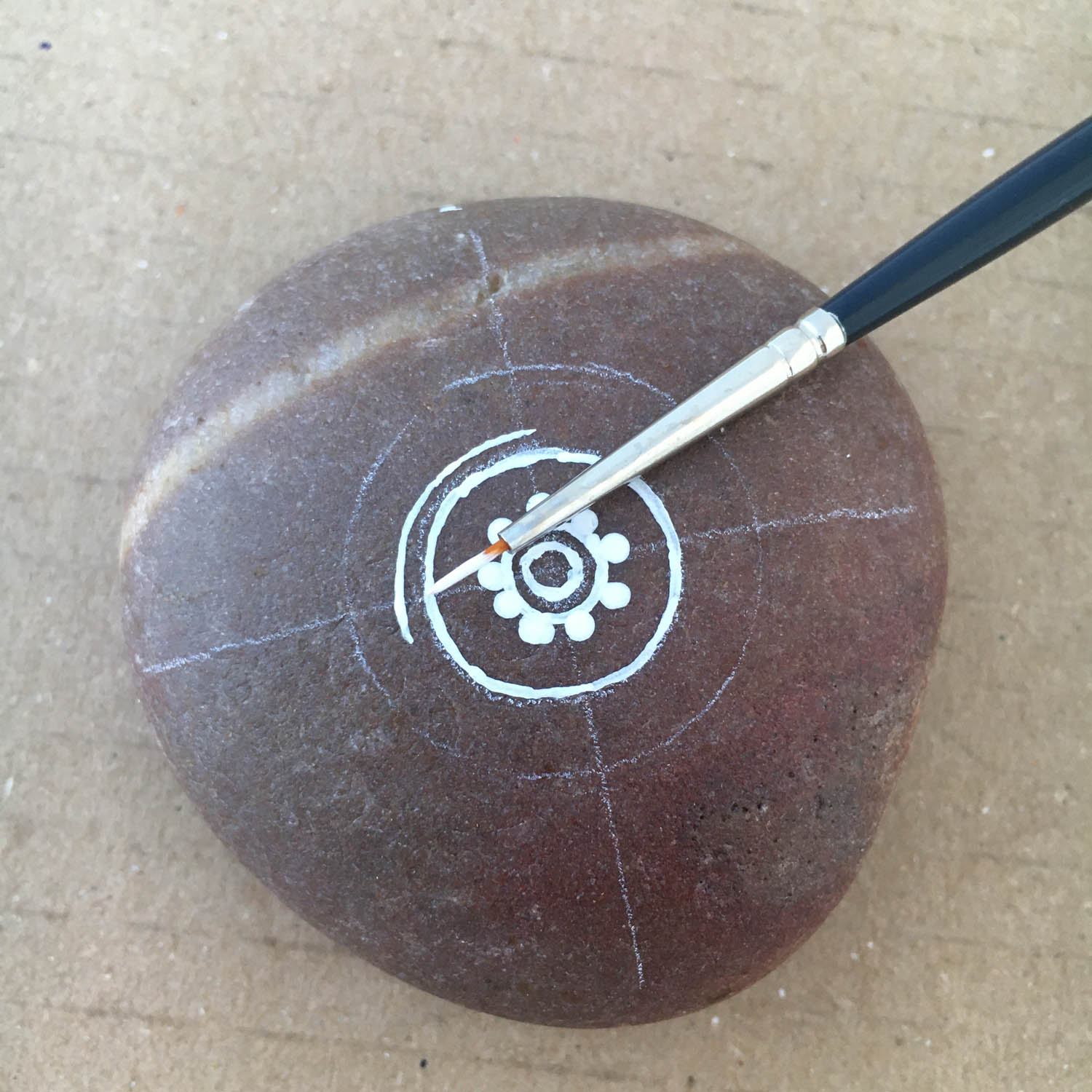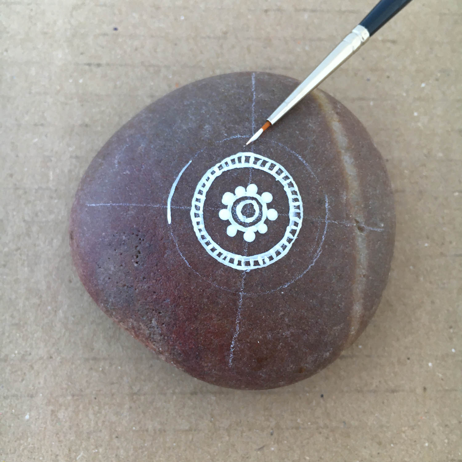 Draw a small circle right in the centre of the pebble where the lines cross.