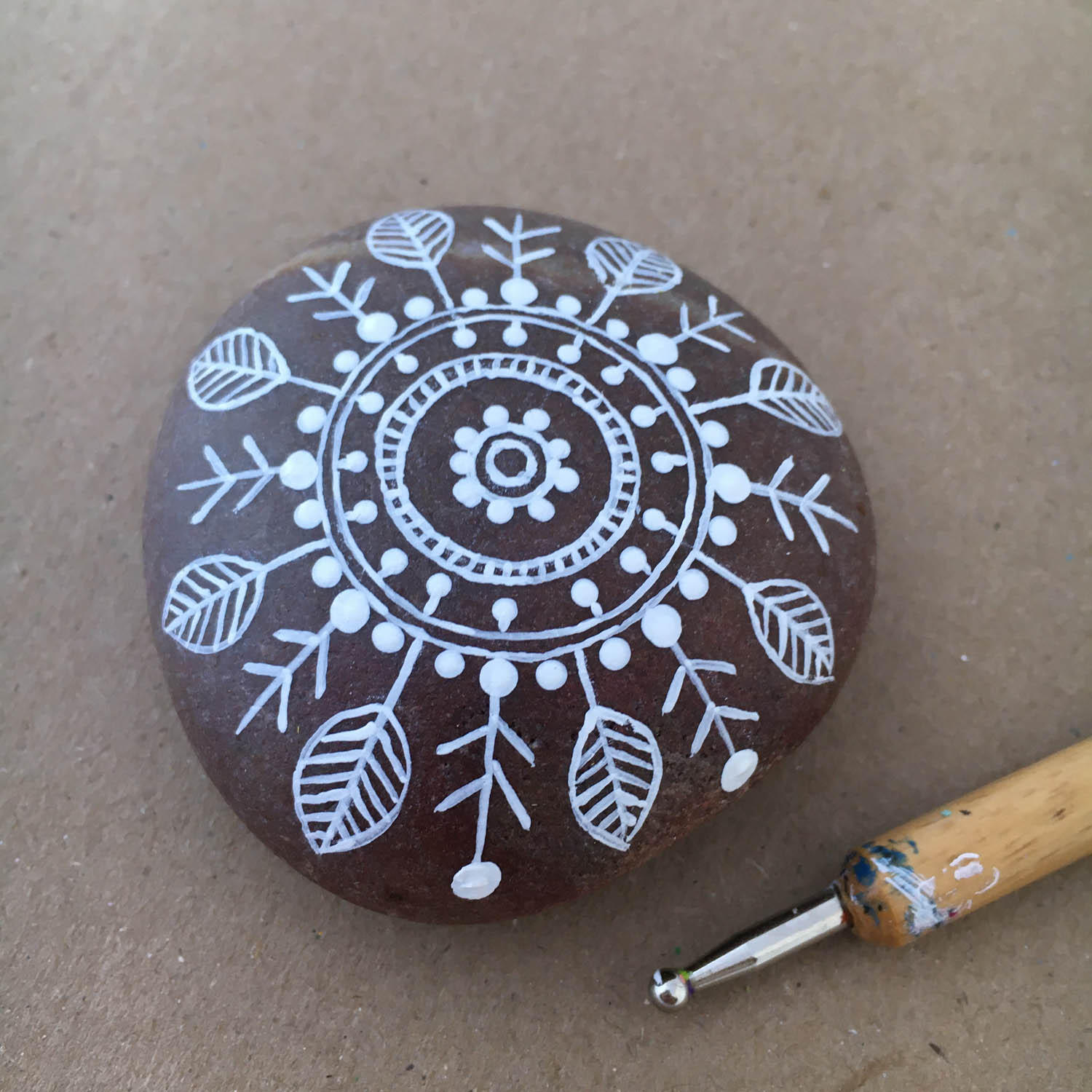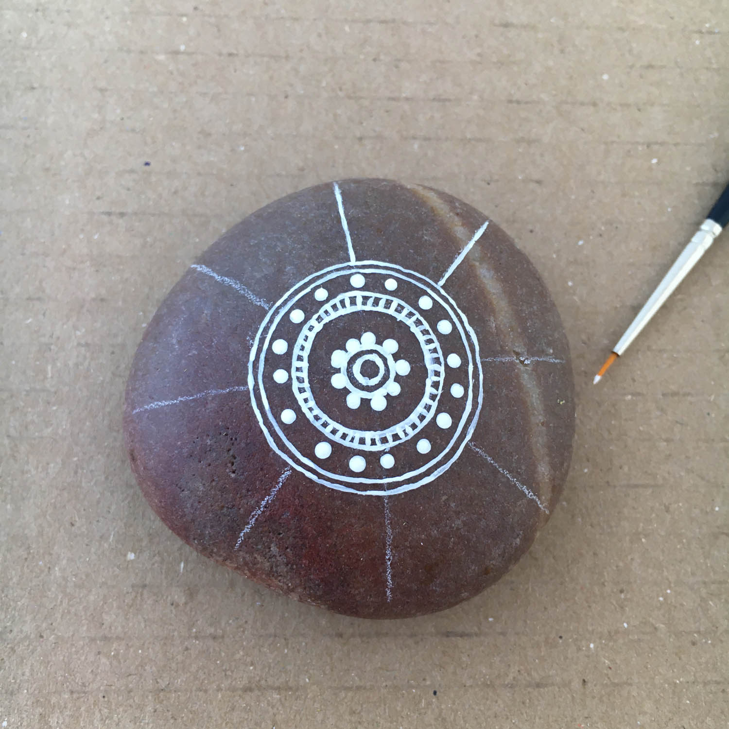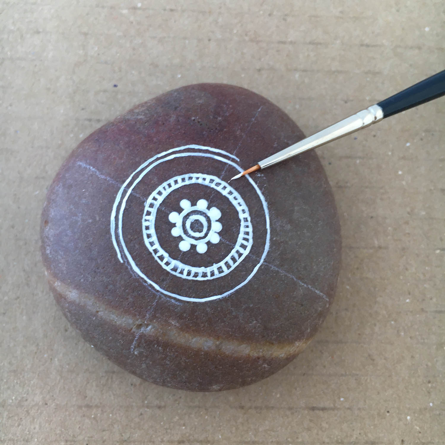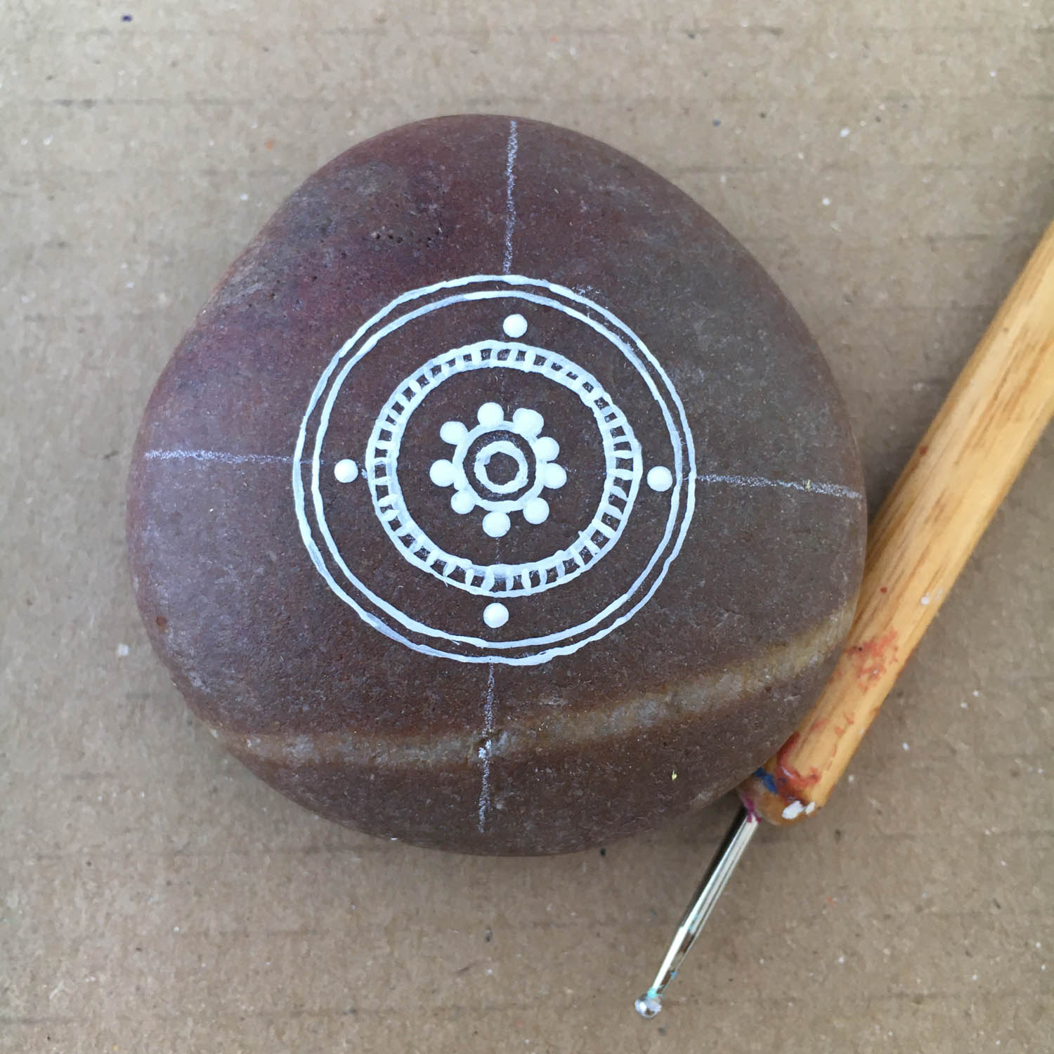 Step by step photos on how to paint a Mandala on a rock. (hover over the pictures for instructions)