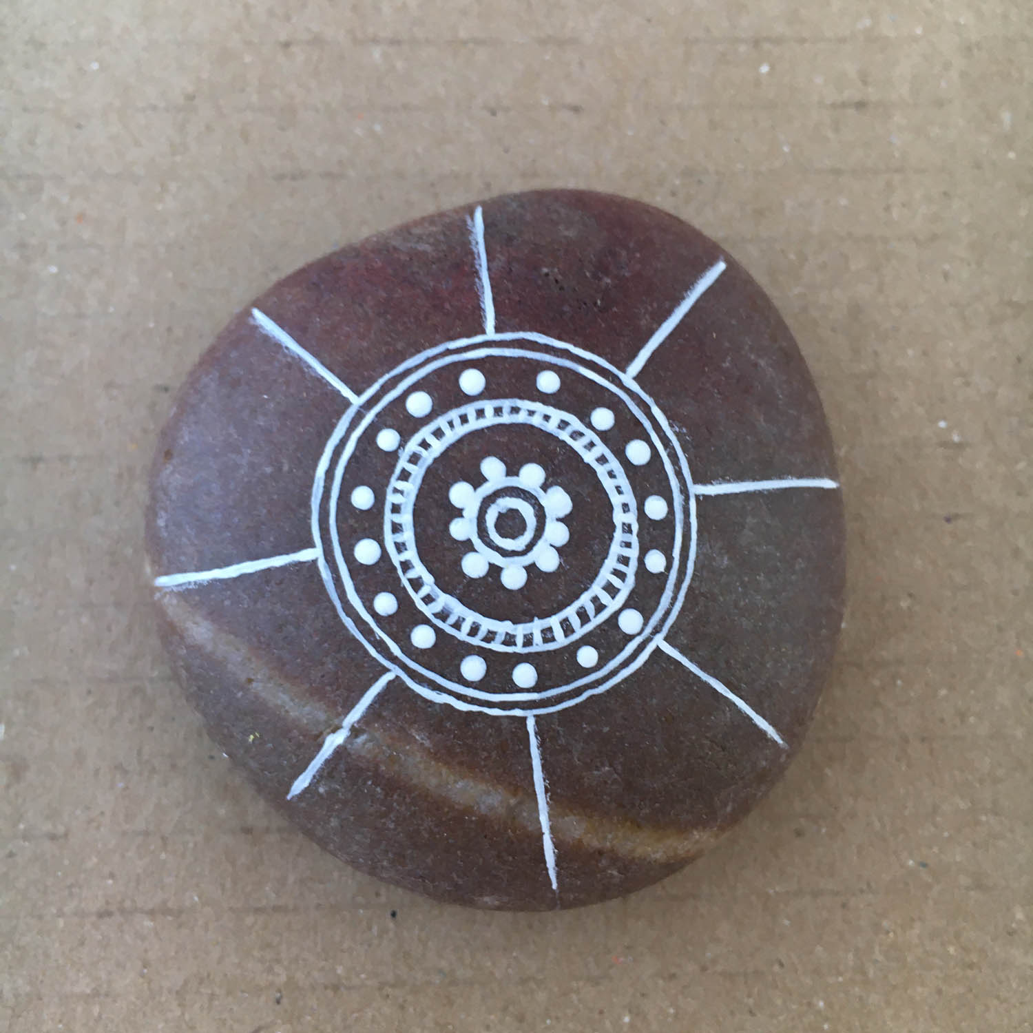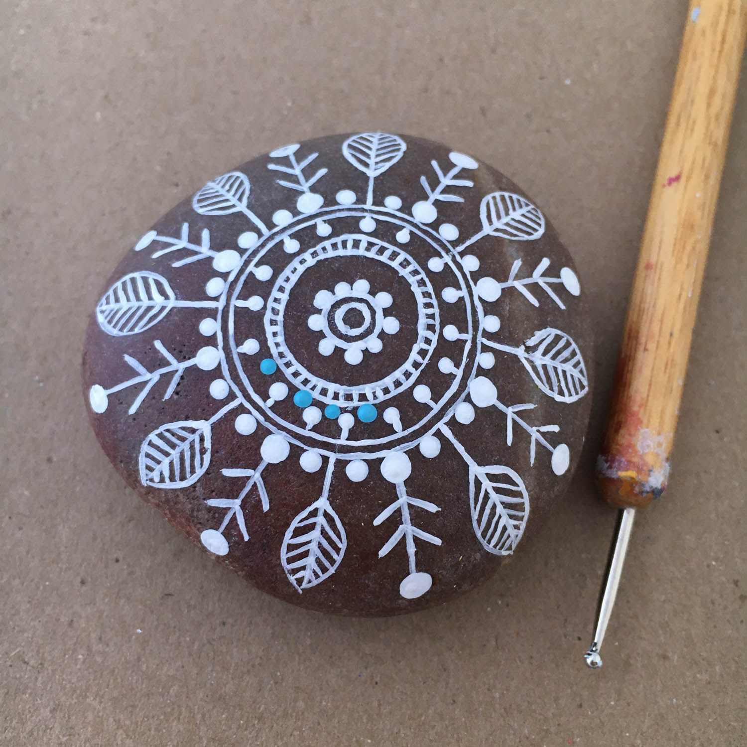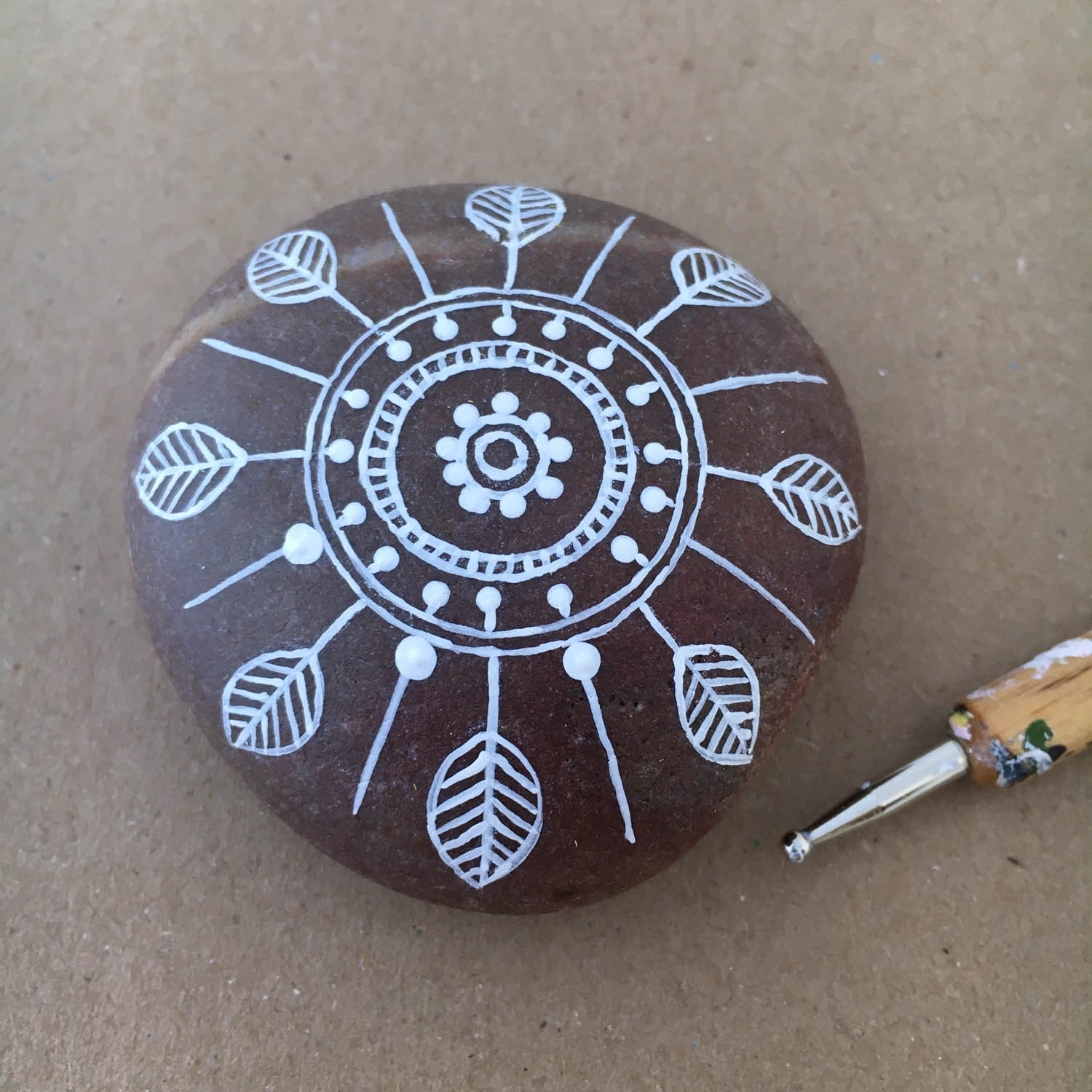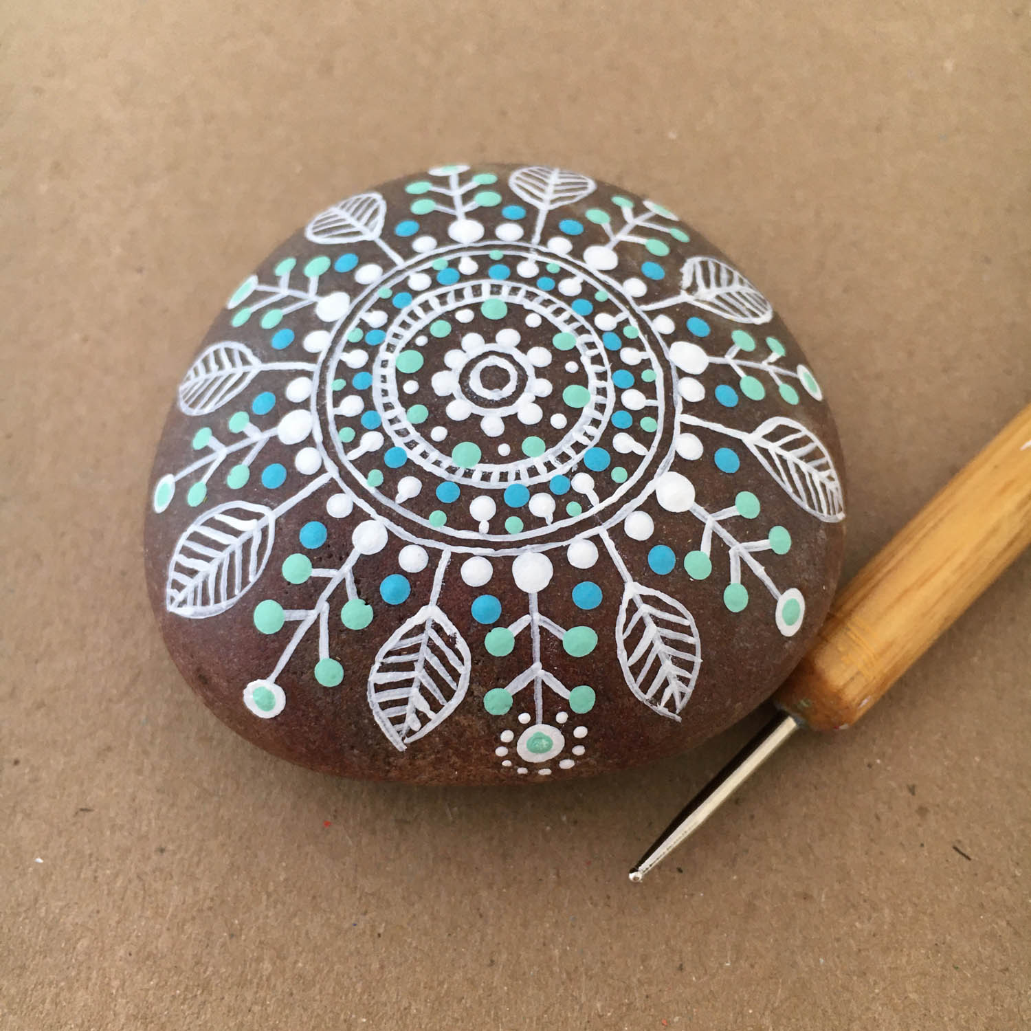 Step by step photos on how to paint a Mandala on a rock. (hover over the pictures for instructions)
