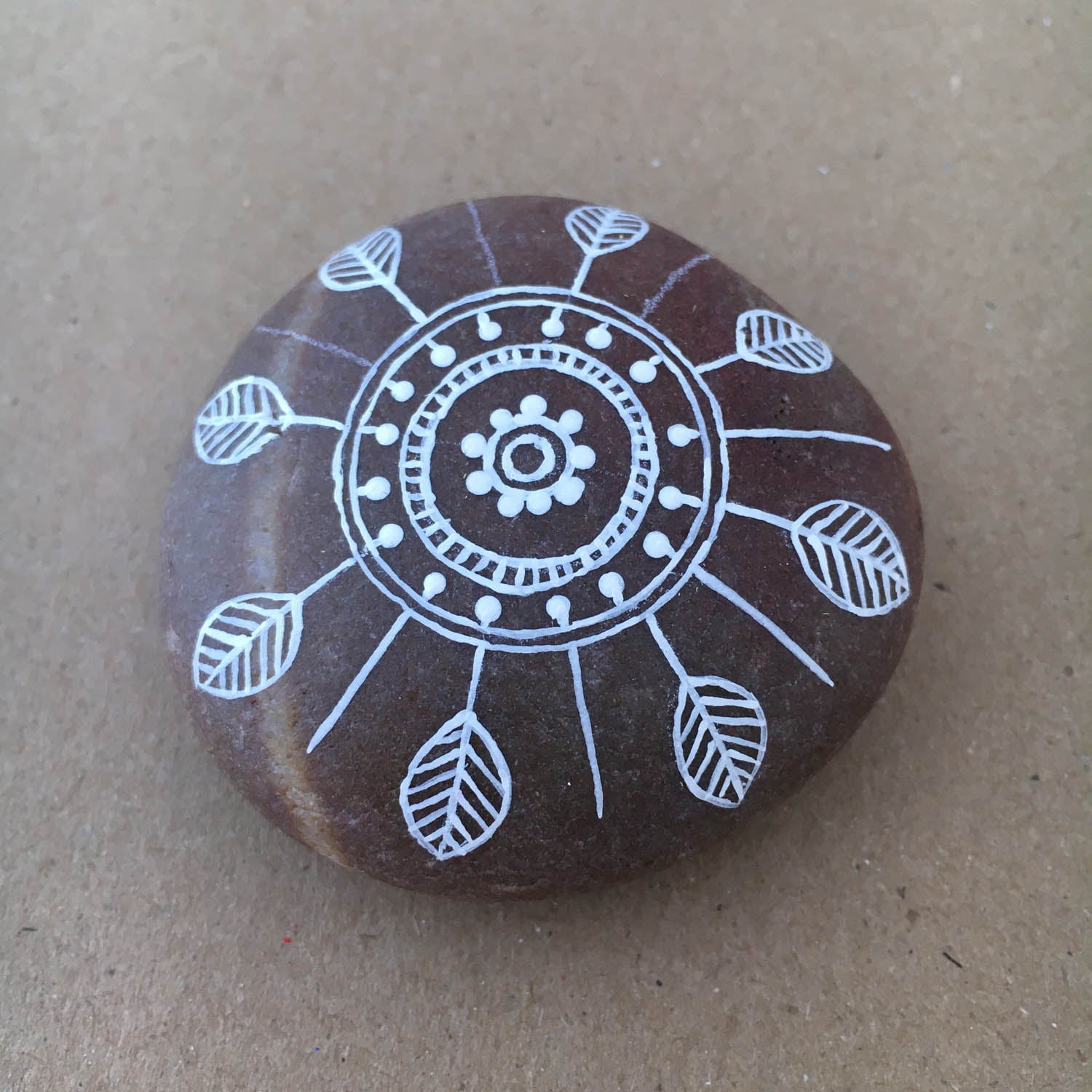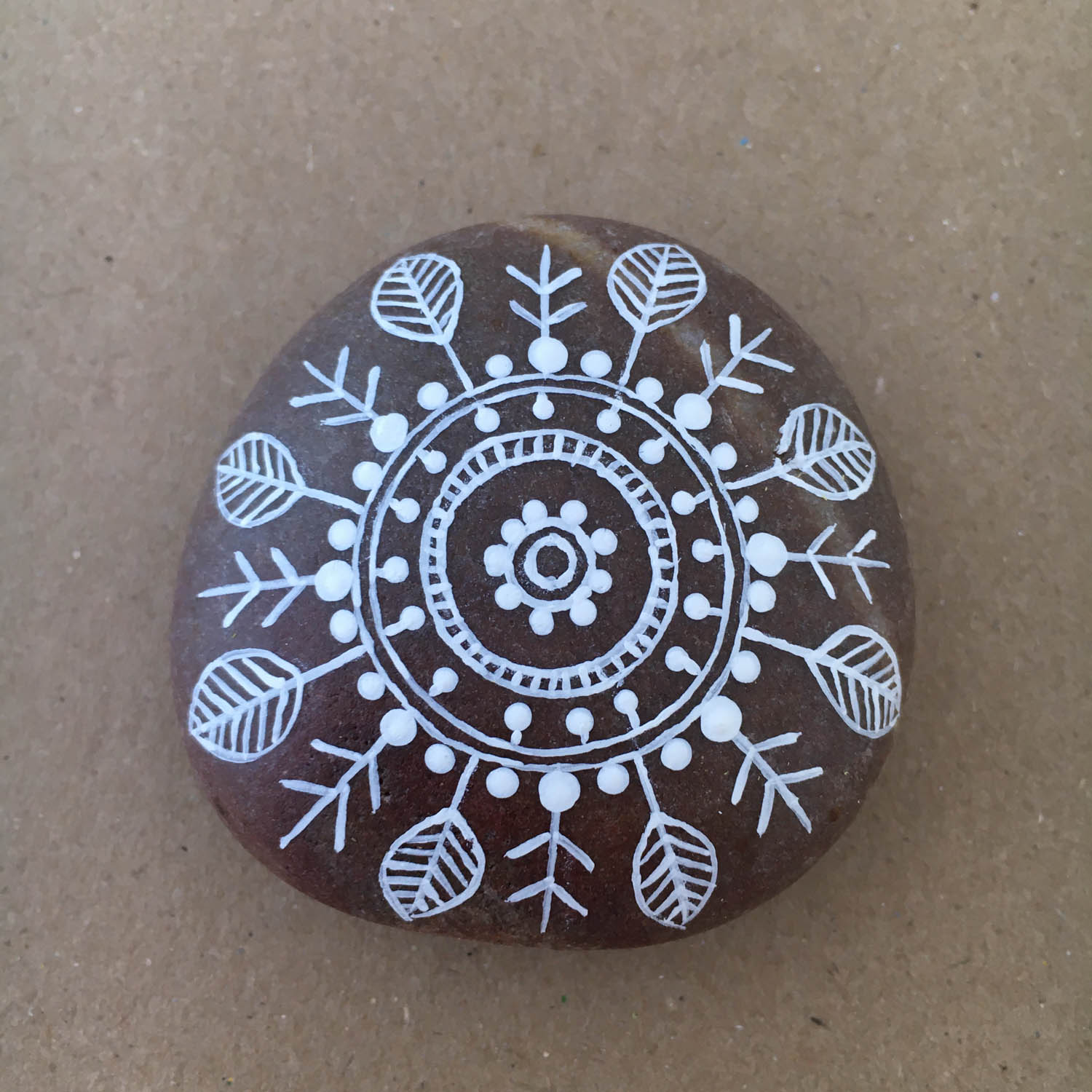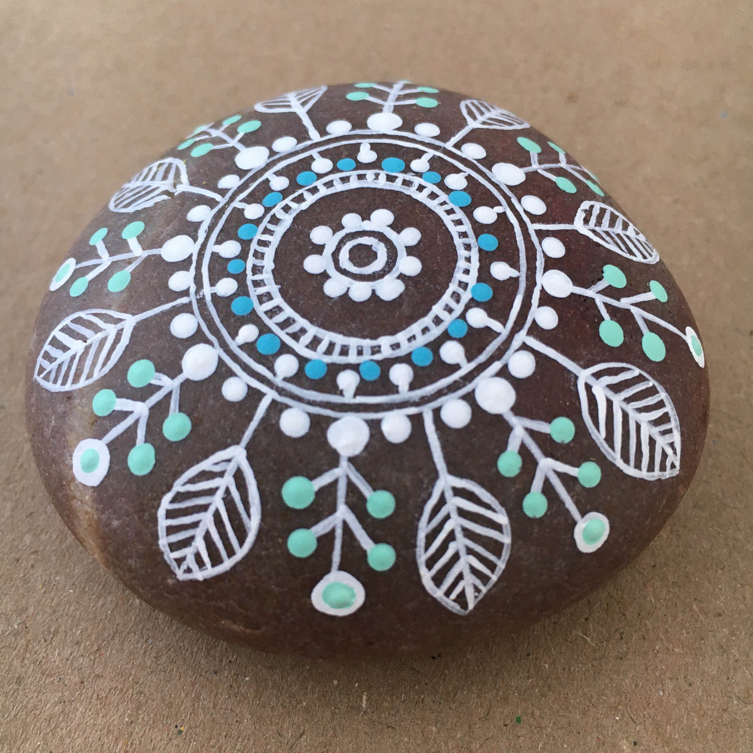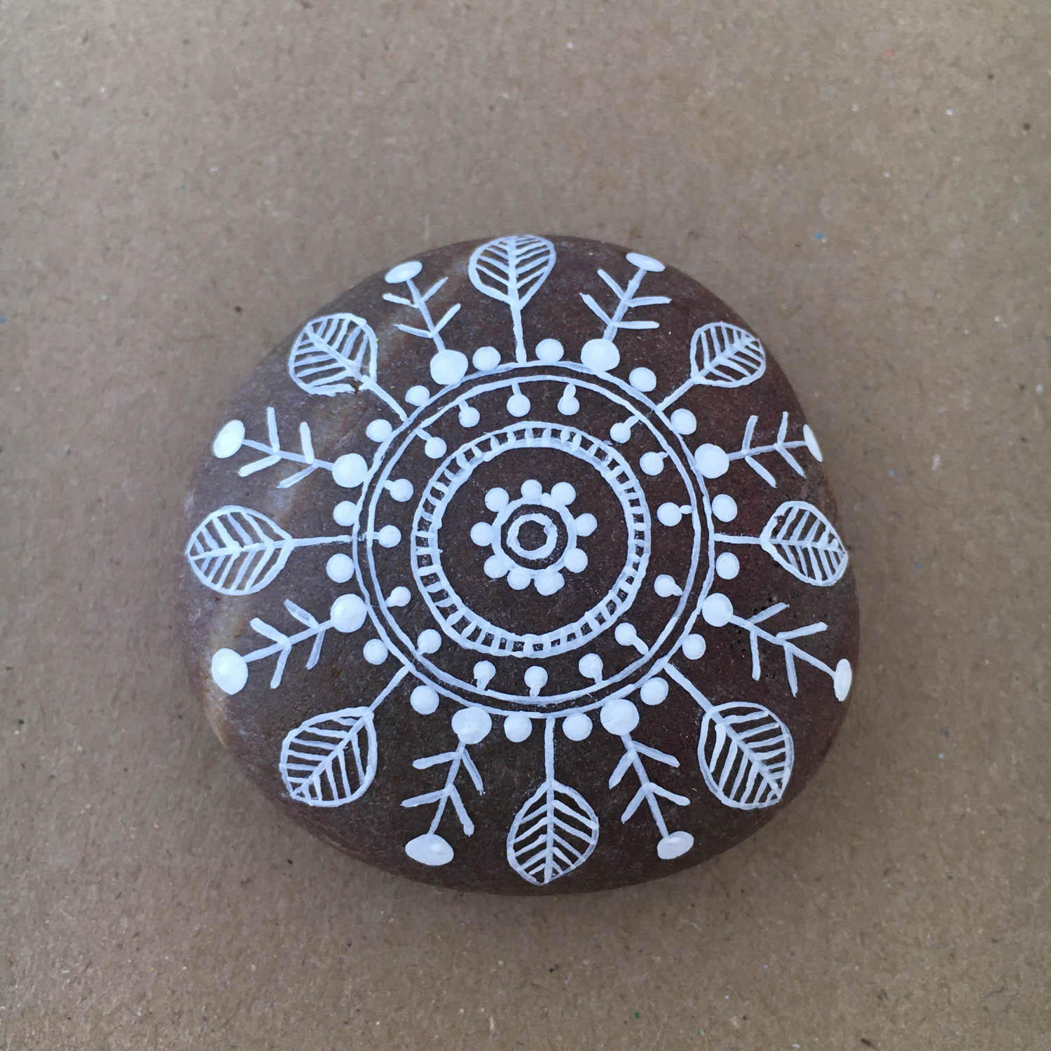 Step by step photos on how to paint a Mandala on a rock. (hover over the pictures for instructions)