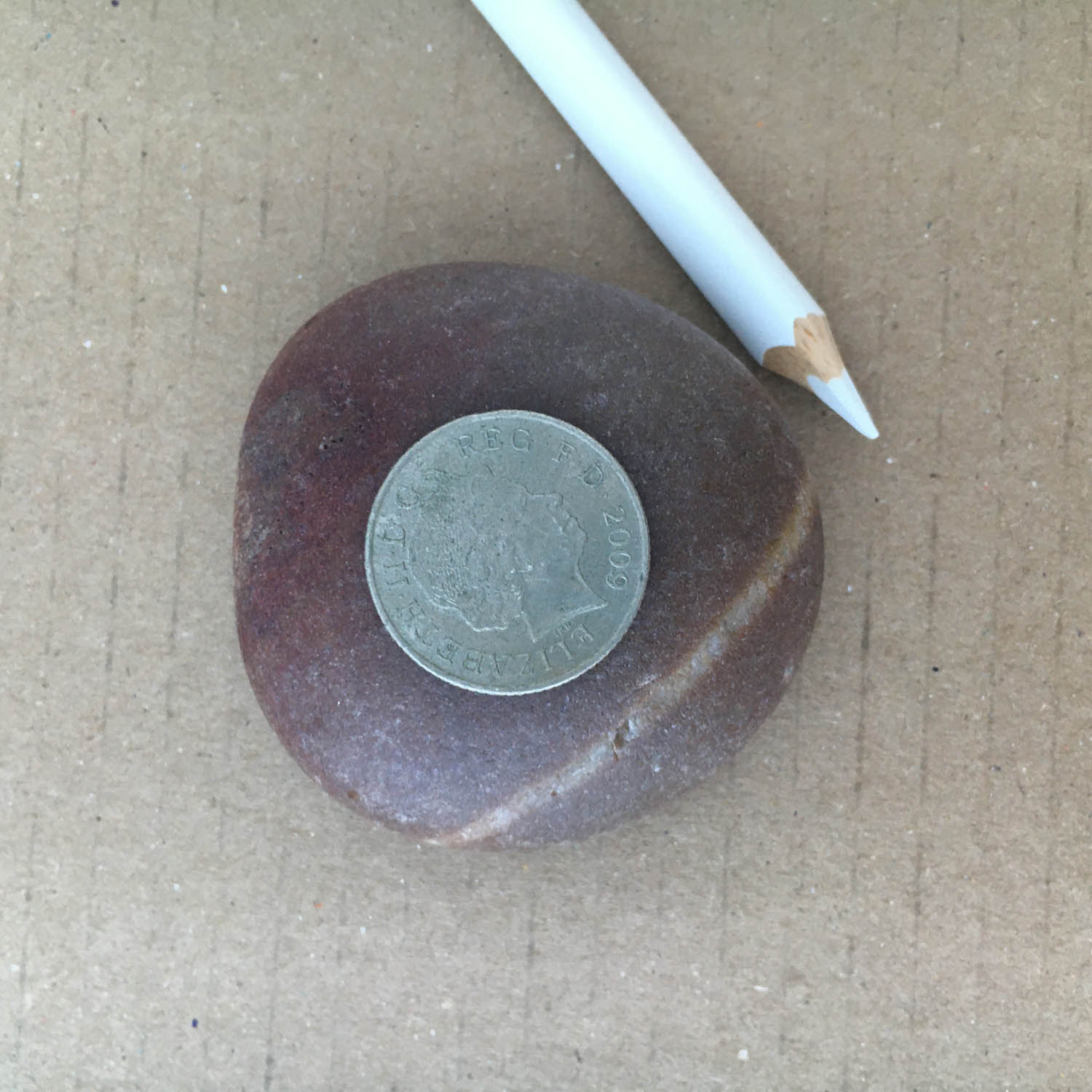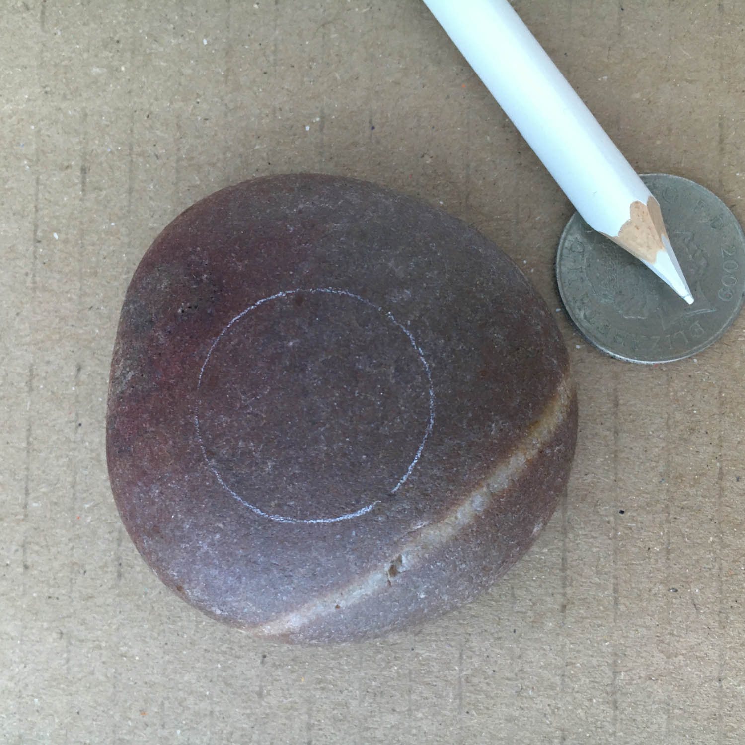 Find a coin which fits neatly on top of the pebble and trace around it with a white pencil.