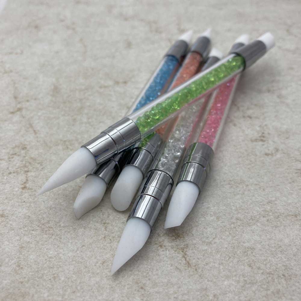 Set of 5 Sparkly silicone mark-makers. Each end has a silicone brush end. They’re great for making petals shapes when painting flowers.