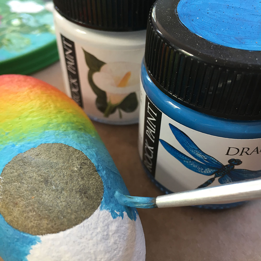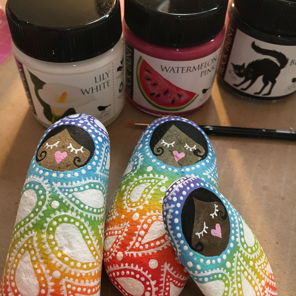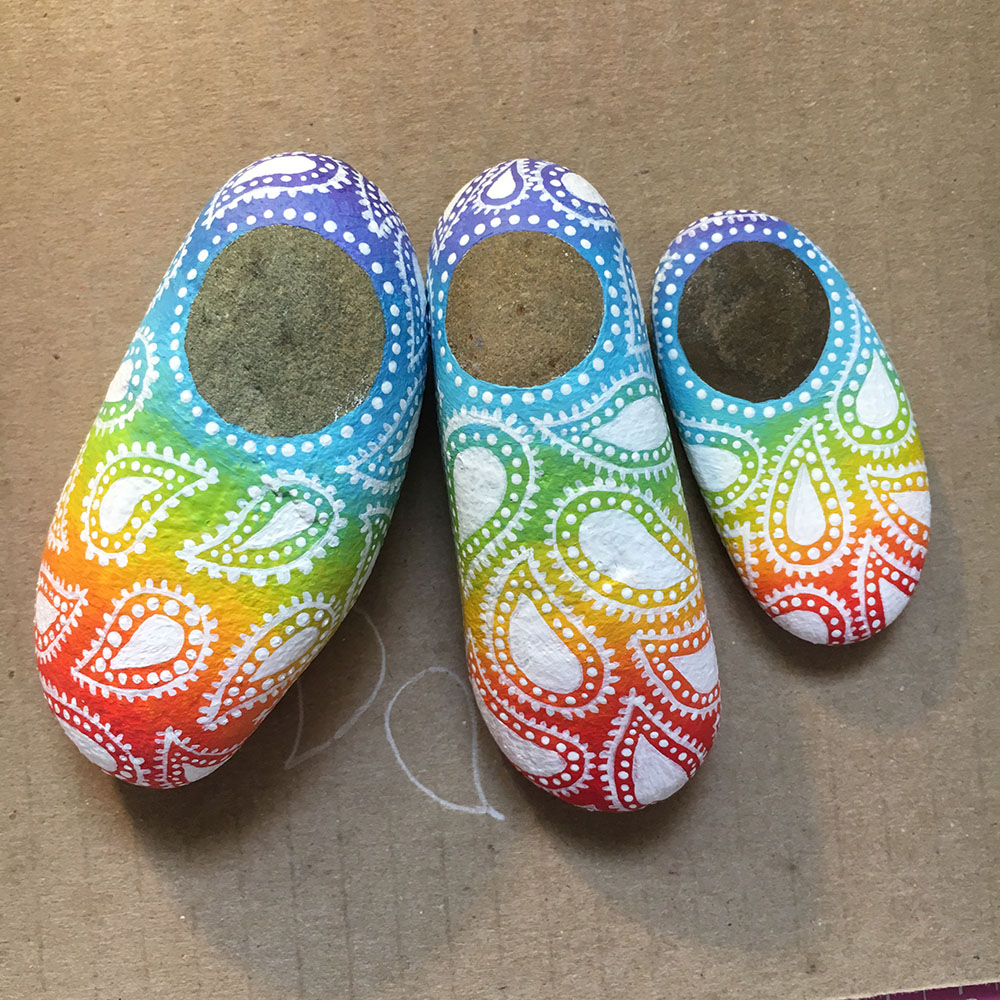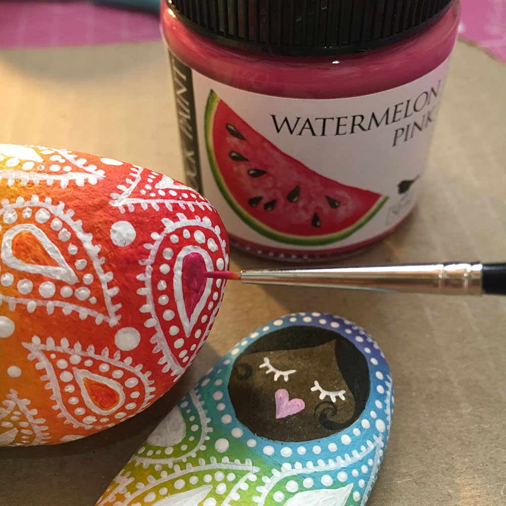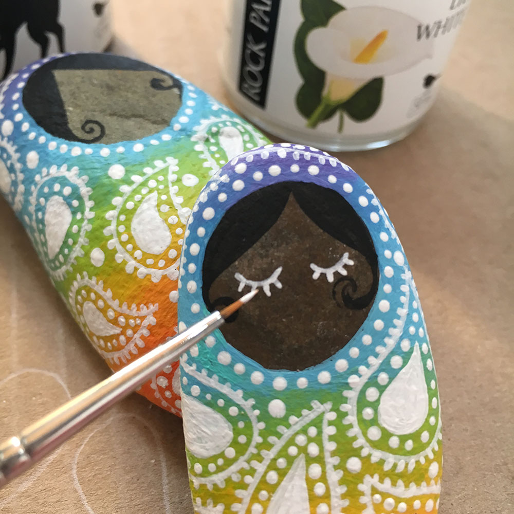 If you have some long, smooth, rounded rocks, you're pretty lucky and we'll show you how to paint a Rainbow Paisley Baby.