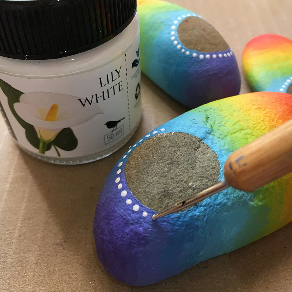 Give the babies another coat of white paint so that your bright rainbow colours will show up well.