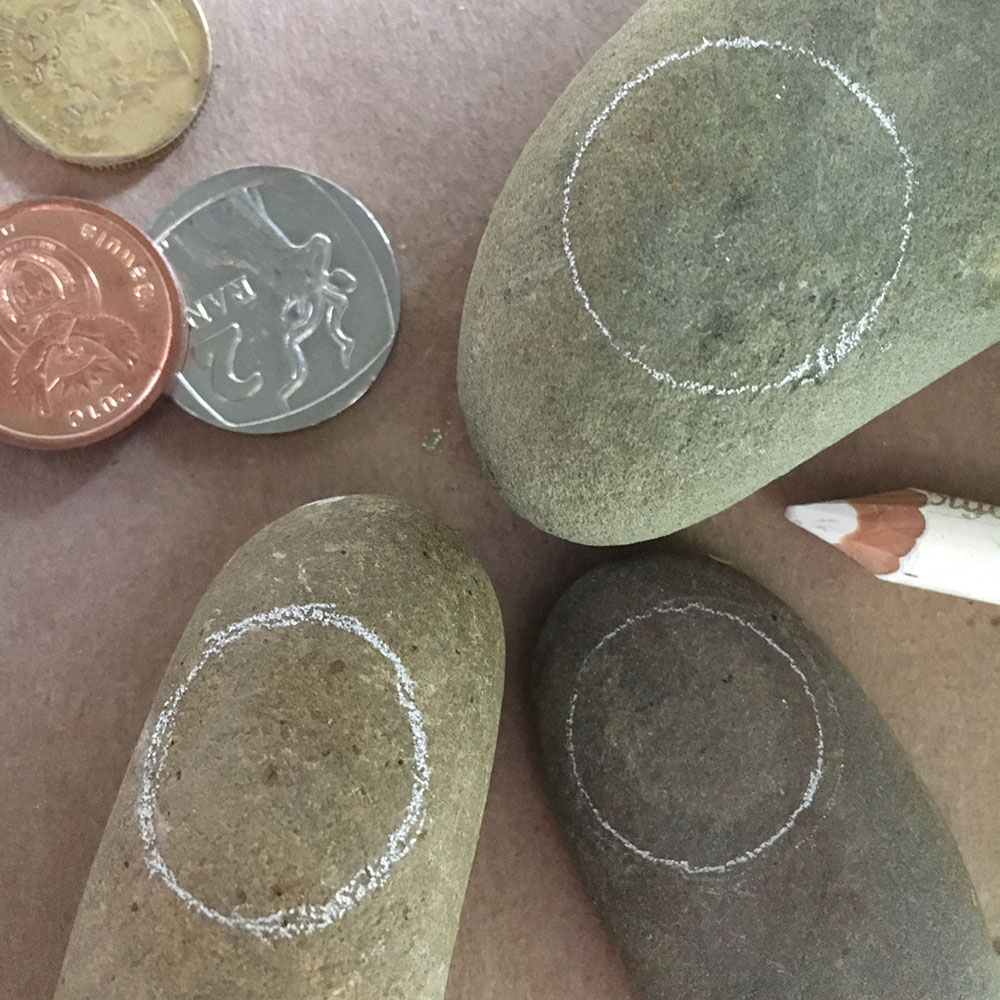 Using a coin and a white pencil, mark the face area on the rock, where the head would bee, this area will be left the natural stone colour.