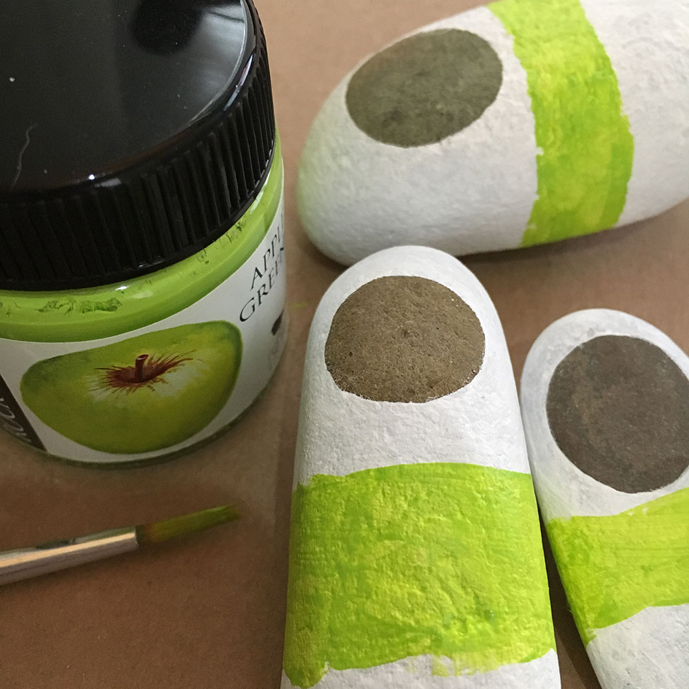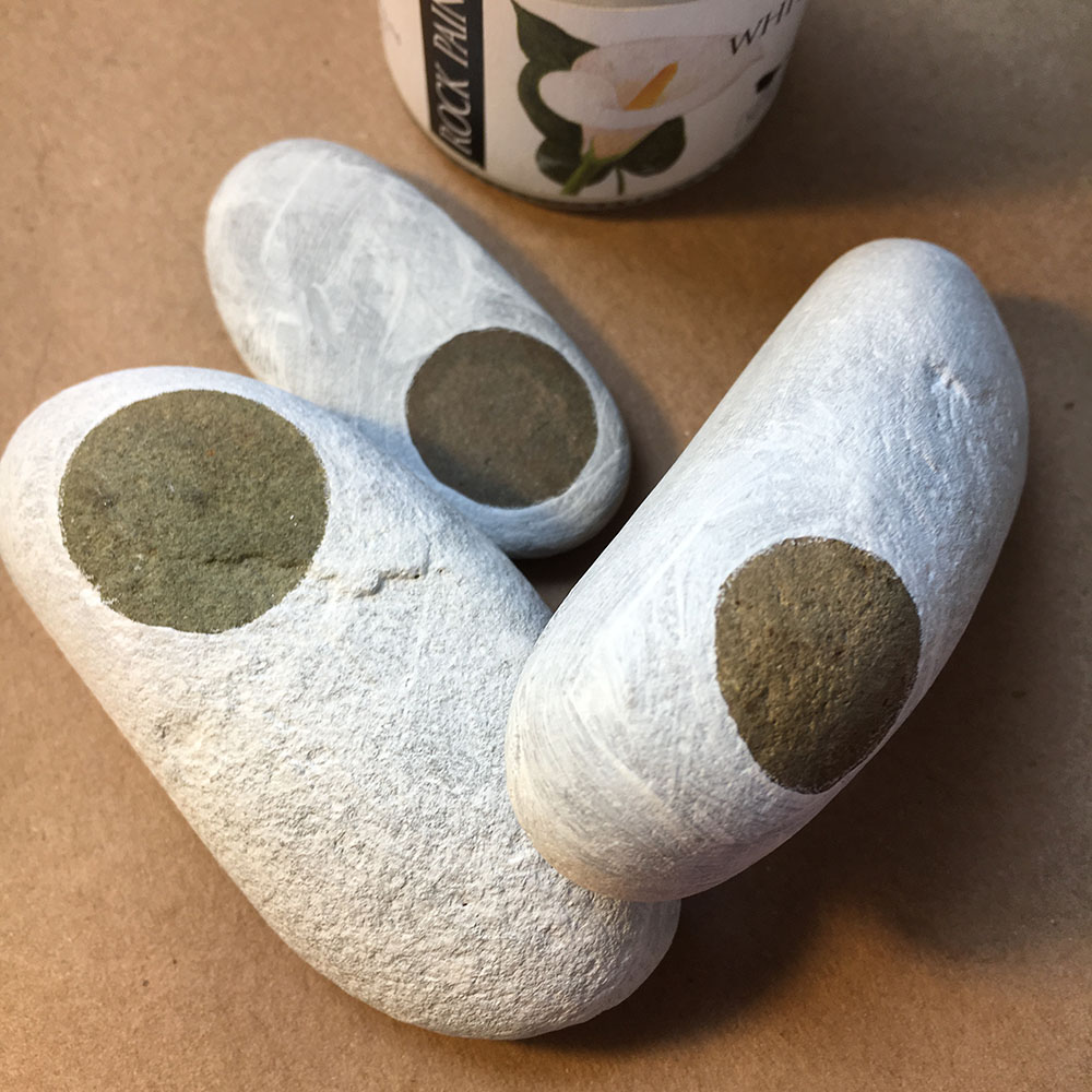Paint the whole rock, front and back, leaving only the circle unpainted.